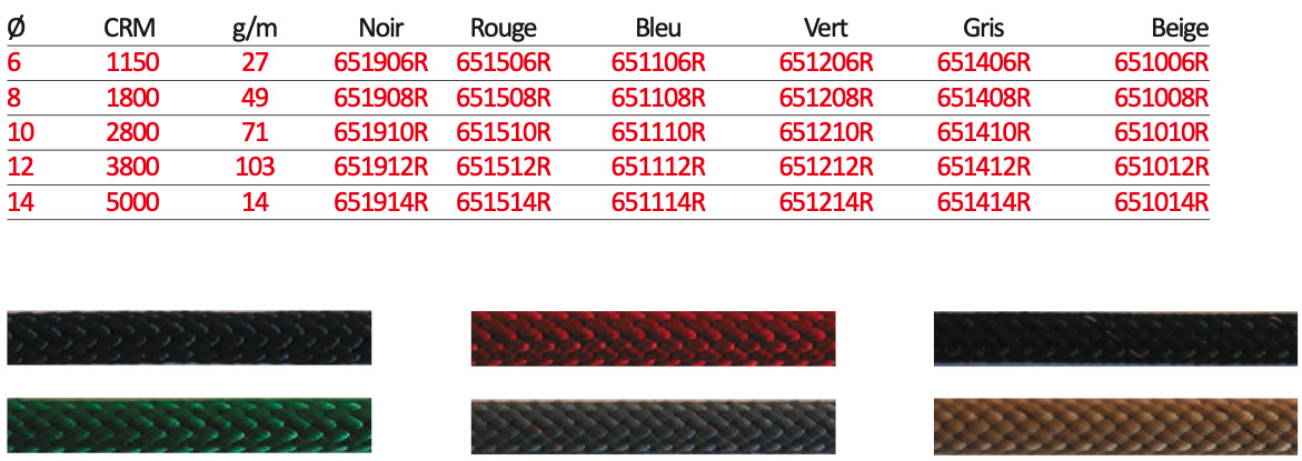 SIRIUS 500 Imprimer Pour voir le tarif Connectez-vous ou Créez un compte Référence 651910R Ø 6 mm 8 mm 10 mm 12 mm 14 mm Couleur Gris Beige Noir Bleu Vert Rouge Description Le grand classique de Robline avec les caractéristiques optimales d'une double tresse en polyester, faible allongement et grande stabilité. Âme : Polyester 12 fuseaux Gaine : Polyester 32 fuseaux Documents techniques Le produit vient d'être ajouté au panier